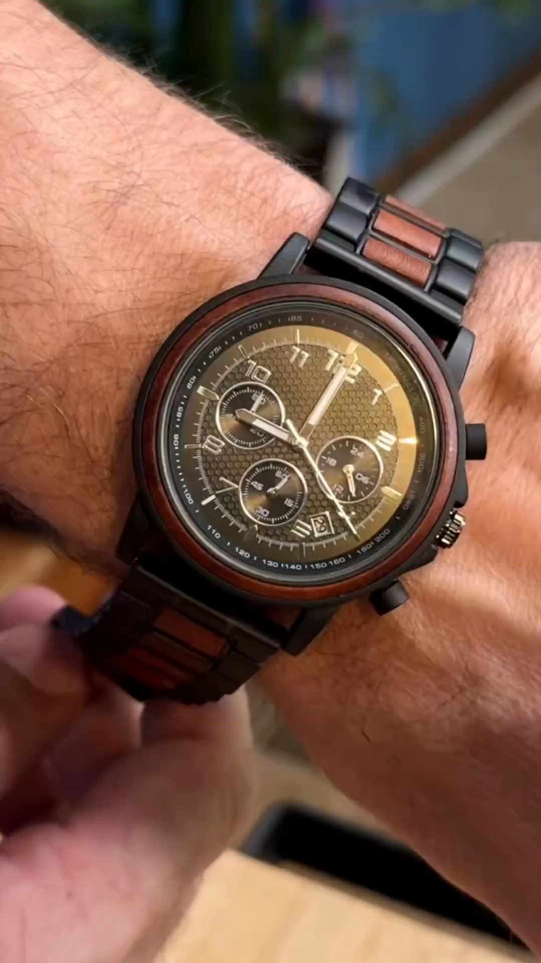 We produce our wood watches for men and women with only reclaimed wood, creating minimal waste during the manufacturing processes. Each unique watch is handcrafted by a professional watchmaker. Adding a touch of nature-inspired beauty with engravings of your choice of words and graphics.